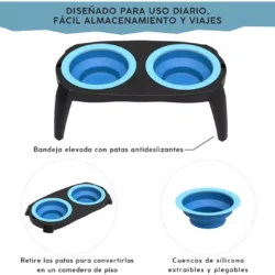 El Comedero Alto Doble de Silicona Plegable ha sido diseñado para mejorar la digestión y postura de tu perro o gato. Su diseño elevado ayuda a evitar malestares estomacales y tensión en el cuello.